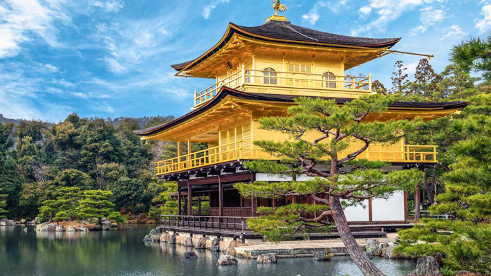 - Chùa Gác Vàng (Kinkaku) - là văn cảnh nổi tiếng nhất Kyoto bởi sự tinh tế và vị thế ấn tượng của ngôi đền dát vàng nằm giữa hồi nước trong xanh tạo nên bức tranh với ý tưởng về sự tồn tại giữa chốn thiên đường và trần thế.